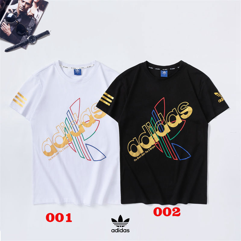アディダス 半袖tシャツ個性スポーツ風ティシャツコットントップスペアお揃い人気運動風上着