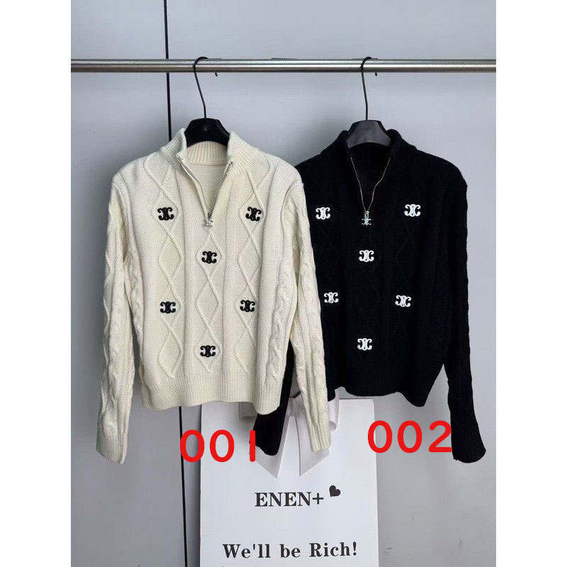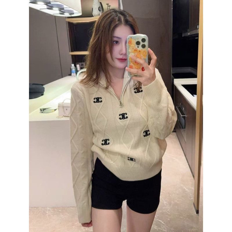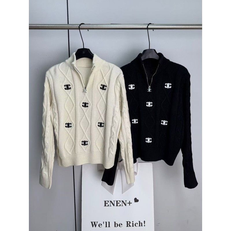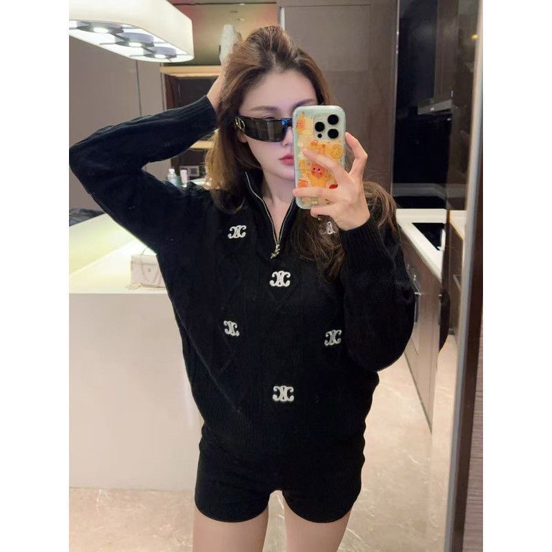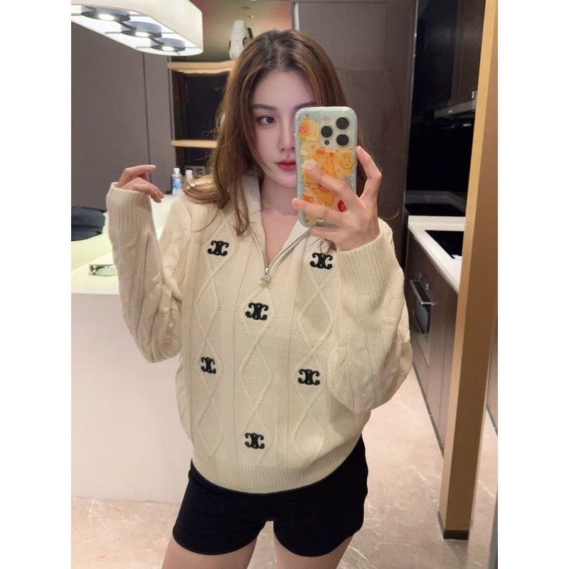 セリーヌ ニットトップスカジュアル人気ブランド半ファスナー付き襟付きセーター